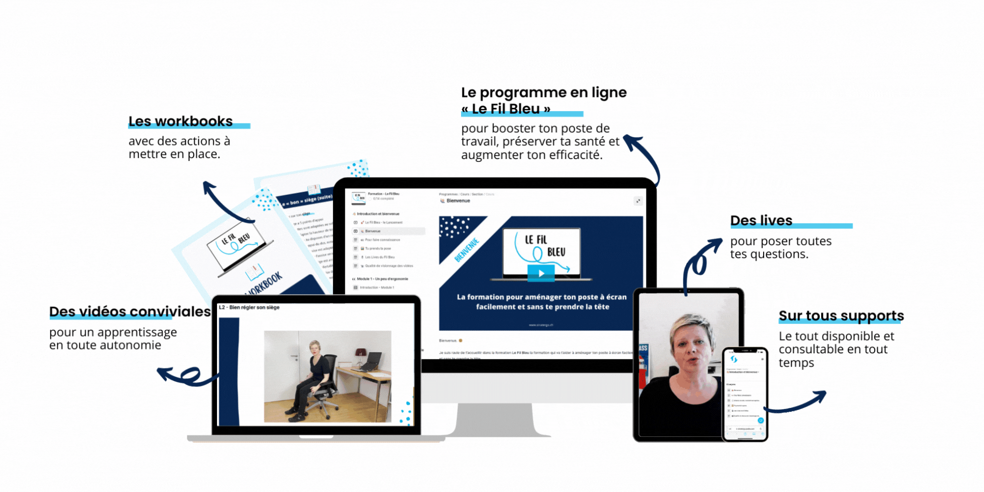 - Tu as probablement déjà cherché des informations sur l'aménagement de ton poste de travail en ligne ou dans des brochures, mais il est possible que tu sois submergé.e par la quantité d'informations disponibles.